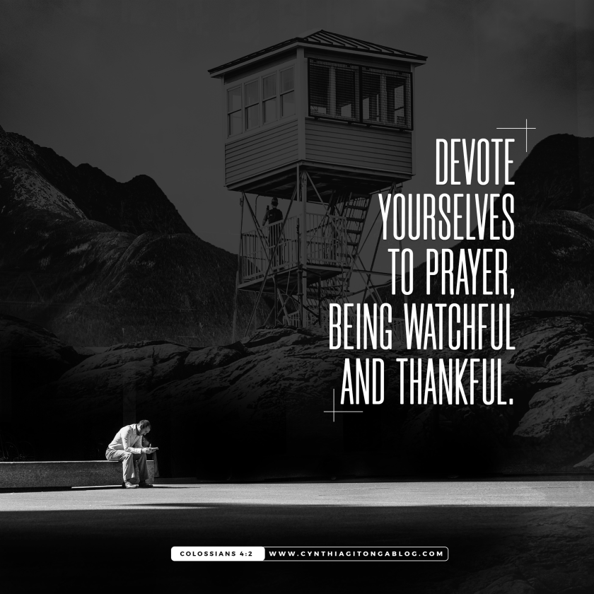 “Devote yourselves to prayer, being watchful and thankful.” Let me ask this question and I would want you to be truthful to yourself, do you pray? am not asking for those one minute prayers before you eat or before you go to bed! am talking about creating time to pray. I tend to think that as believers, we relax a lot especially when things are going right, we go on spiritual vacation, put our feet up, enjoying life with a big spoon, forgetting that we need to “be alert and of sober mind” why? because, “your enemy the devil prowls around like a roaring lion looking for someone to devour.” When you have gone on spiritual vacation, he creeps in and strikes and that is why we should always be watchful, devoting ourselves in prayer and always having a thankful heart.